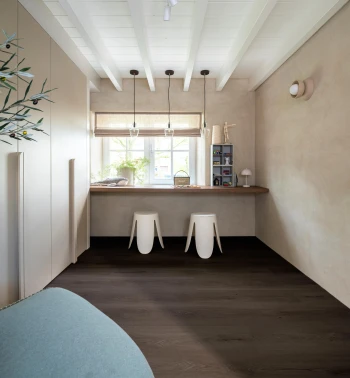 Šis modelis turi tokios pačios spalvos vinilines laiptų pakopas. Pakopos gaminamos iš identiško paviršiaus ir rašto, todėl laiptai atrodo visiškai vientisi su grindimis – nuo spalvos iki reljefo tekstūros. Tai praktiškas ir estetiškas sprendimas namams su laiptais, padedantis išlaikyti vienodą interjero stilių visame aukšte.
